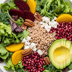 - Final touches: Arrange sliced avocado elegantly on top. Sprinkle a few extra pecans and pomegranate seeds for a stunning finish.